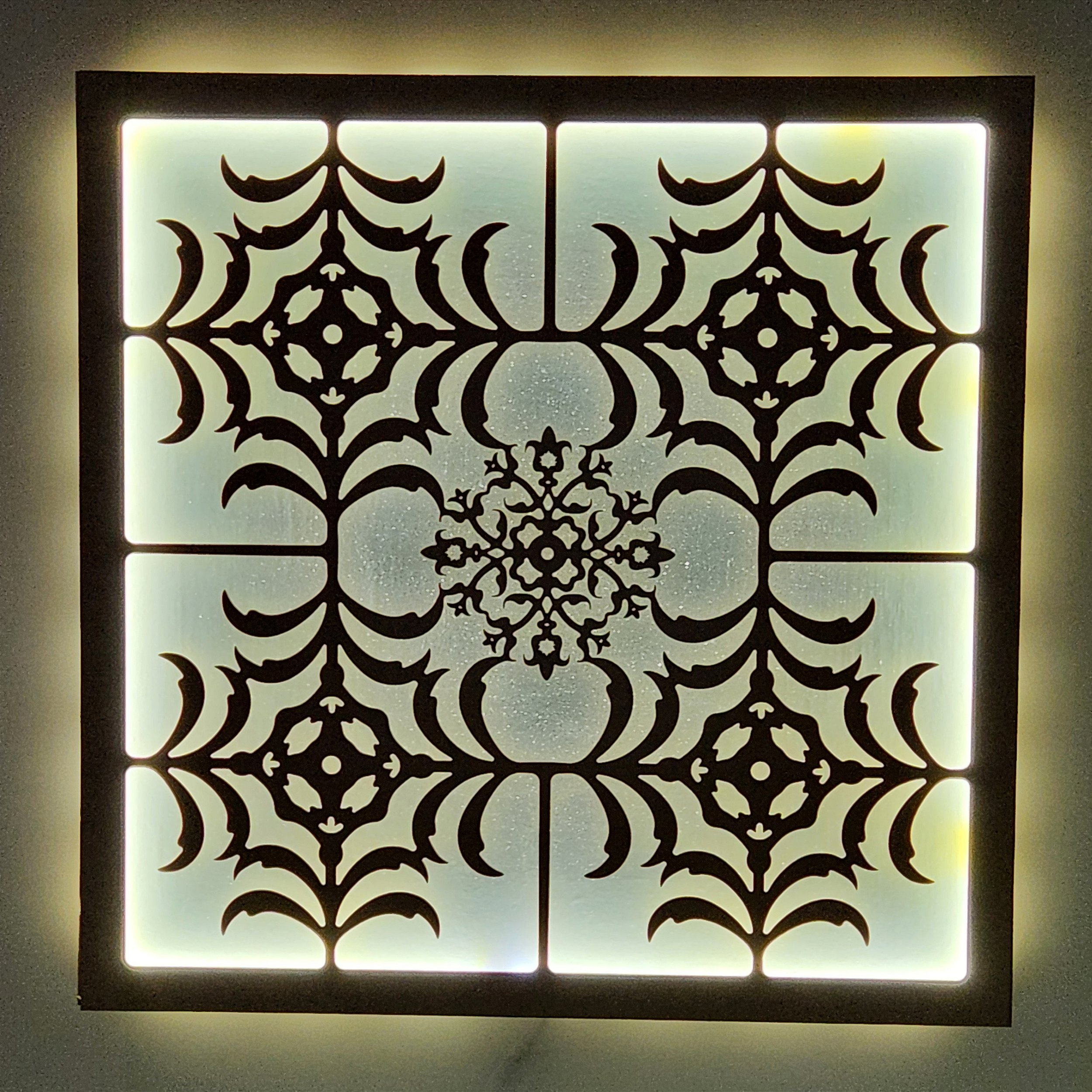 Elaborado no MDF de 3 milímetros com 3,5 centímetros nas bordas, para que a fita led com espessura de 8 milímetros, fique escondida quando colada nas 4 laterais do MDF de 9 milímetros.